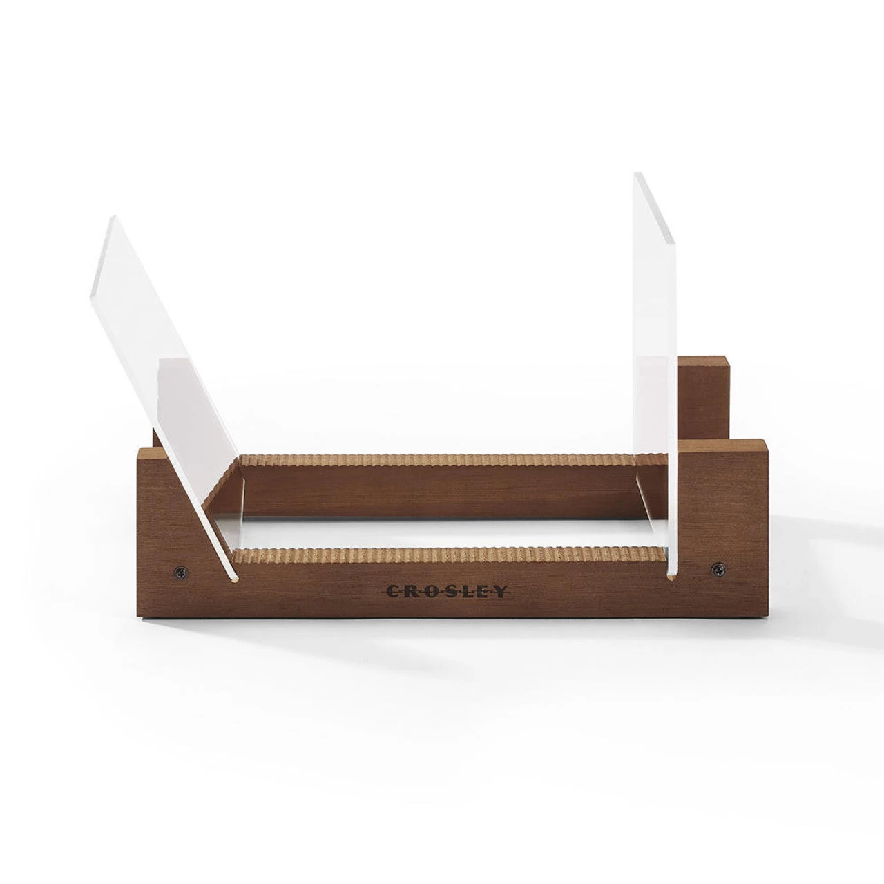 Display your records in style with the Record Storage Display Stand featuring solid wood and clear acrylic for a sleek modern design. Enjoy the simple, elegant, and practical design that can hold between 20-30 albums.