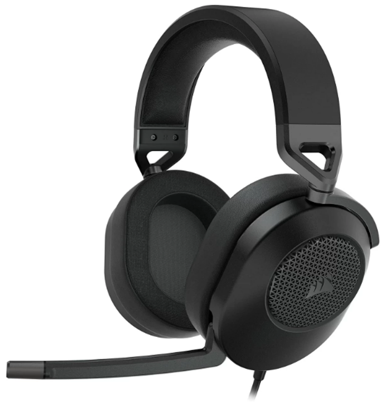 The CORSAIR HS65 SURROUND Gaming Headset delivers all-day comfort and sound with memory foam leatherette ear pads and Dolby Audio 7.1 surround sound on PC and Mac, bolstered by lightweight construction reinforced with aluminum. Sonarworks SoundID Technology personalizes your headset settings to match your audio taste, and a 3.5mm audio connector ensures wide compatibility across most devices. 1. Comfortable leatherette memory foam ear cups with soft fabric, a mesh grill ear cup design, and an adjustable headband with aluminum-reinforced construction provide lightweight comfort just 282g and durability through hours of gameplay. 2. High-quality, custom-tuned 50mm neodymium audio drivers deliver excellent sound with the range needed to hear everything on the battlefield, plus support for Sony Tempest 3D audio on PS5. 3. An included USB adapter enables Dolby Audio 7.1 surround sound on PC and Mac, creating a multi-channel audio experience that places you right in the middle of the game. 4. SonarWorks SoundID technology for customized sound control that tailors your headset settings to your personal audio tastes on PC and Mac. 5. An omni-directional microphone accurately captures all your calls and commands, with a convenient flip-to-mute function. 6. Discord-certified for crystal-clear communication and outstanding sound. 7. Multi-platform compatible with PC, PS5/PS4, Xbox Series X, Nintendo Switch, and mobile devices via a 3.5mm connector. 8. Easy-access on-ear volume control enables on-the-fly adjustments without distracting you from your game. 9. Powerful CORSAIR iCUE software enables custom audio equalizer settings, 7.1 surround sound, and more. Shipping Dimensions 226(L) x 77(W) x 236(H) mm / 8.90′(L) x 3.03′(W) x 9.29′(H) Shipping Weight 0.51 kg / 1.13 lbs.