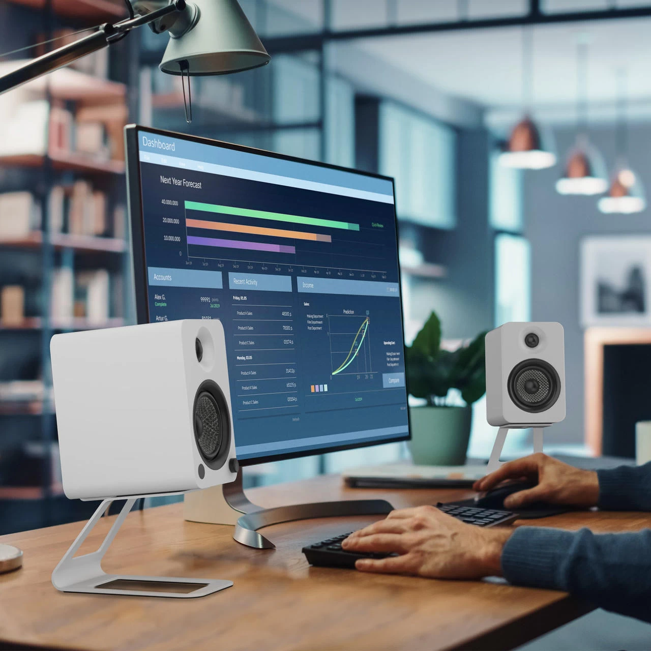 ACCURATE, ON-AXIS OUTPUT – Elevate and align your speakers with your ears so that you can enjoy flawless on-axis sound and prevent reflection from nearby surfaces.