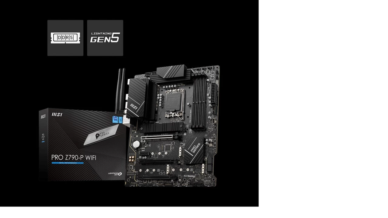 MSI PRO Z790-P WIFI Intel LGA 1700 MINI-ITX Motherboard, 4x DDR5 128GB, 1x PCI-E x 16, 1x PCI-E x 14, 4x M.2, 6x SATA, 4x USB 3.2, 4x USB2.0, CHIPSET INTEL Z790 CPU SUPPORT Supports 12th/13th Gen Intel® Core™ Processors, Pentium® Gold and Celeron® Processors LGA 1700 MEMORY 4x DDR5, Maximum Memory Capacity 128GB Memory Support 7000+(OC)/6800(OC)/6600(OC)/6400(OC)/6200(OC)/6000(OC)/5800(OC)/5600(JEDEC)/5400(JEDEC)/5200(JEDEC)/5000(JEDEC)/4800(JEDEC) MHz Max. overclocking frequency: • 1DPC 1R Max speed up to 7000+ MHz • 1DPC 2R Max speed up to 6600+ MHz • 2DPC 1R Max speed up to 6400+ MHz • 2DPC 2R Max speed up to 5600+ MHz Supports Intel® XMP3.0 OC Supports Dual-Controller Dual-Channel mode Supports non-ECC, un-buffered memory ONBOARD GRAPHICS 1x HDMI™ 1x DisplayPort Support HDMI™ 2.1 with HDR, maximum resolution of 4K 60Hz* Support DP 1.4, maximum resolution of 4K 60Hz* *Available only on processors featuring integrated graphics. Graphics specifications may vary depending on the CPU installed. EXPANSION SLOT 3x PCI-E x16 slot 1x PCI-E x1 slot PCI_E1 PCIe 5.0 supports up to x16 (From CPU) PCI_E2 PCIe 3.0 supports up to x1 (From Chipset) PCI_E3 PCIe 4.0 supports up to x4 (From Chipset) PCI_E4 PCIe 3.0 supports up to x1 (From Chipset) STORAGE 4x M.2 slot M.2_1 (From CPU) supports up to PCIe 4.0 x4 , supports 22110/2280/2260/2242 devices M.2_2 (From Chipset) supports up to PCIe 4.0 x4 , supports 2280/2260/2242 devices M.2_3 (From Chipset) supports up to PCIe 4.0 x4 / SATA mode, supports 2280/2260/2242 devices M.2_4 (From Chipset) supports up to PCIe 4.0 x4 / SATA mode, supports 2280/2260/2242 devices 6x SATA 6G port USB 4x USB 2.0 (Rear) 4x USB 2.0 (Front) 2x USB 3.2 Gen1 Type A (Rear) 4x USB 3.2 Gen1 Type A (Front) 1x USB 3.2 Gen2 Type A (Rear) 1x USB 3.2 Gen2 Type C (Front) 1x USB 3.2 Gen2x2 Type C (Rear) PCB DIMENSION ATX 243.84mmx304.8mm