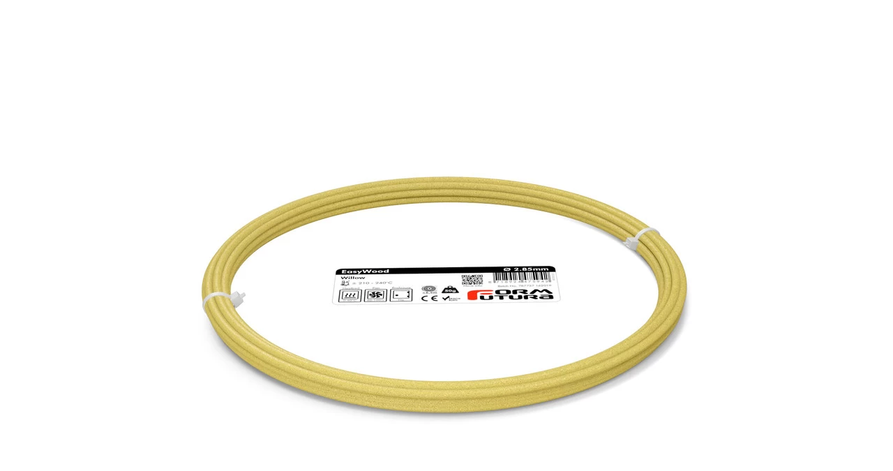 EasyWood is a wood-filled PLA-based filament which is gravimetrically filled with approximately 40% grinded wood particles. EasyWood is a very easy to print wood filament as it is based on our EasyFil PLA compound and the 40% gravimetrical filling with grinded wood particles make the filament absolutely warp-free.